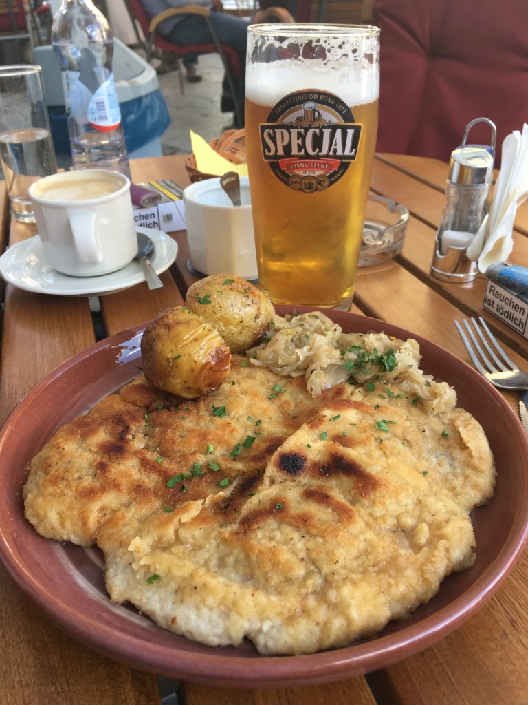 Zum Mittag kehrten wir in ein kleines Restaurant an der Mottlau ein. Auf der Speisekarte standen regionale Spezialitäten: Pierogi (gefüllte Teigtaschen), Fischsuppe und frisch gebratene Ostseescholle. Dazu ein kühles polnisches Bier und der Blick auf die langsam vorbeifahrenden Ausflugsschiffe – ideal, um neue Energie für den Nachmittag zu tanken.