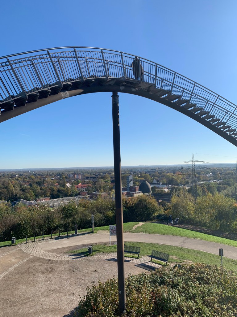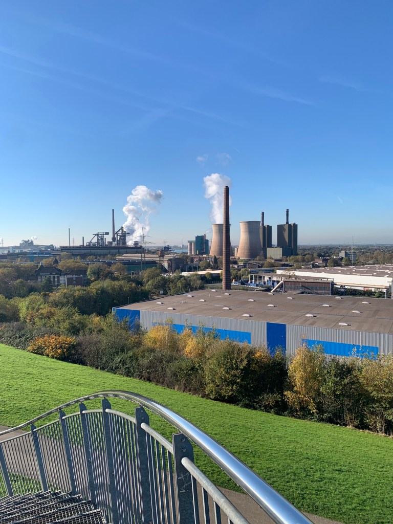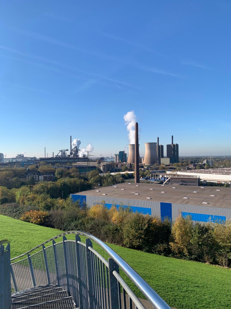 Von oben eröffnete sich uns ein beeindruckender Blick: Über den Rhein hinweg bis in die Ferne, hinein in das Industriepanorama des Ruhrgebiets, wo Schornsteine und Förderanlagen an die Vergangenheit erinnern und zugleich die Gegenwart prägen.
