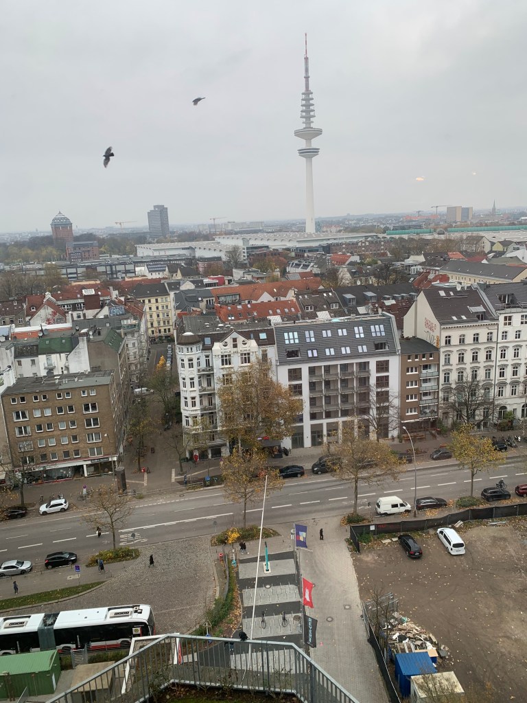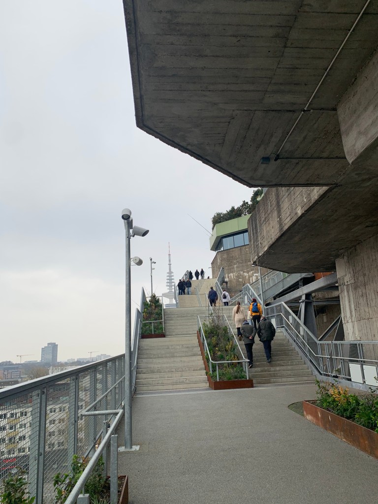 Der Weg über den spiralförmigen Pfad nach oben war ein Erlebnis für sich. Selbst im November wirkte die Bepflanzung erstaunlich grün und lebendig, und oben angekommen eröffnete sich ein beeindruckendes Panorama über Hamburg. Besonders in der frühen Abenddämmerung, wenn die Stadtlichter aufflammen, zeigt der Bunker seine ganze Magie.