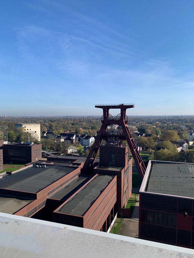 Im November 2024 führte uns ein gemeinsamer Ausflug nach Essen zum UNESCO-Welterbe Zollverein. Schon bei der Ankunft beeindruckte uns die Größe und klare Struktur der Anlage. Das berühmte Doppelbock-Fördergerüst von Schacht XII erhebt sich markant in den Himmel – ein Bauwerk, das längst zum Symbol des Ruhrgebiets geworden ist.