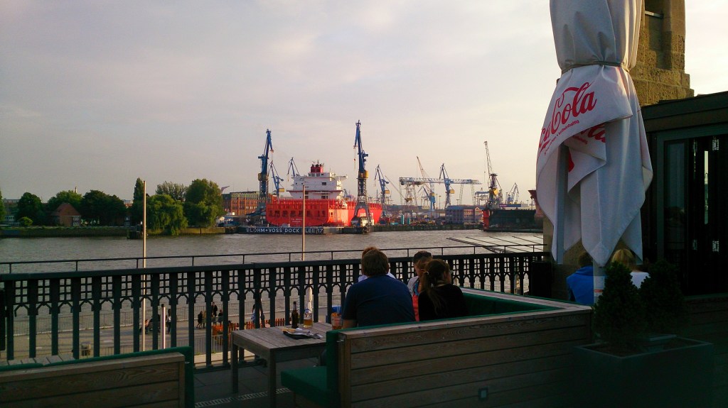 Von der oberen Etage aus bietet sich ein beeindruckender Blick auf die Elbe. Besonders in den Abendstunden, wenn die Hafenlichter schimmern und die Schiffe langsam vorbeiziehen, entsteht eine ganz eigene, fast magische Stimmung.