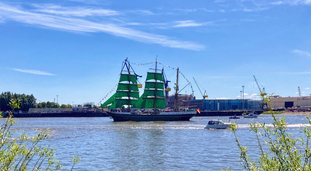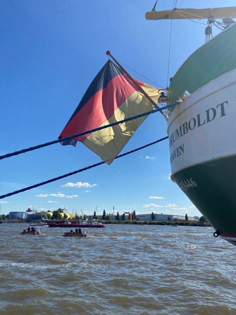 Pünktlich um 13 Uhr setzte sich die Einlaufparade auf der Elbe in Bewegung. Über 250 Schiffe fuhren ein: von kleinen Sportbooten bis hin zu imposanten Großseglern wie der „Alexander von Humboldt II“ und der polnischen „Dar Młodzieży“. Begleitet wurden sie von modernen Marineschiffen und dem mächtigen Feuerlöschboot „Branddirektor Westphal“, das mit seinen Wasserfontänen für jubelnde Gesichter sorgte. Entlang der Landungsbrücken drängten sich tausende Besucher, die dieses einmalige Schauspiel mit Begeisterung verfolgten.
