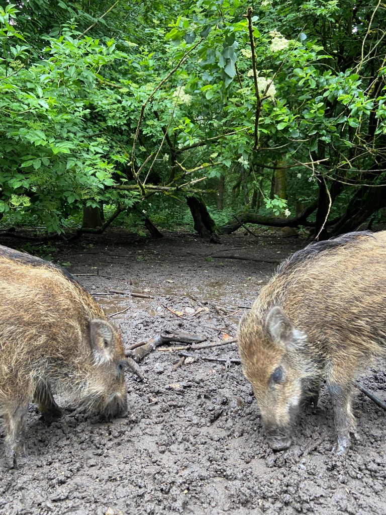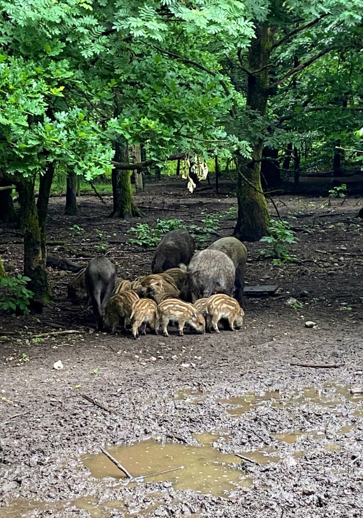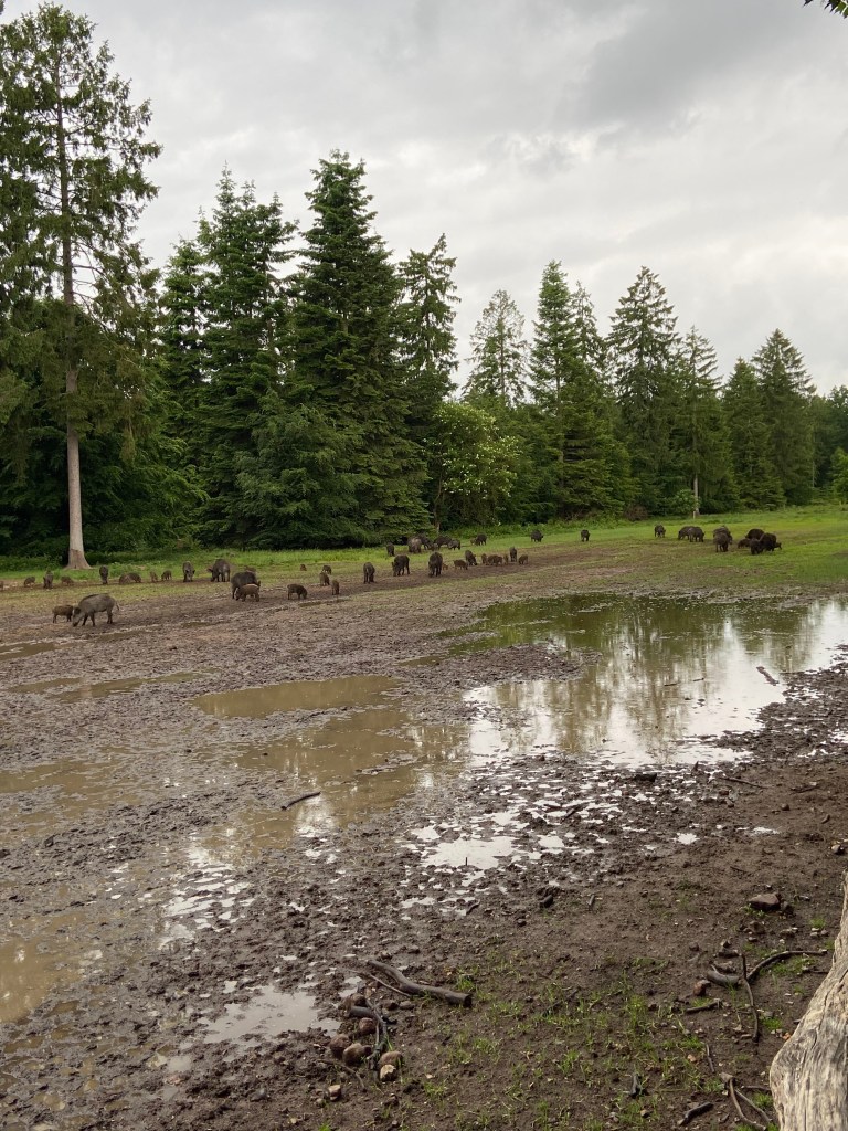 Besonders beeindruckend war die große Herde an Wildschweinen. Als wir im Freigehege unterwegs waren, wurden wir plötzlich von einigen Tieren entdeckt – ein Moment, der uns durchaus Respekt einflößte. Die Kraft und Nähe dieser Tiere zu erleben, war faszinierend, aber auch ein wenig beängstigend. Von einer Aussichtskanzel aus konnten wir das Geschehen anschließend in Ruhe beobachten.