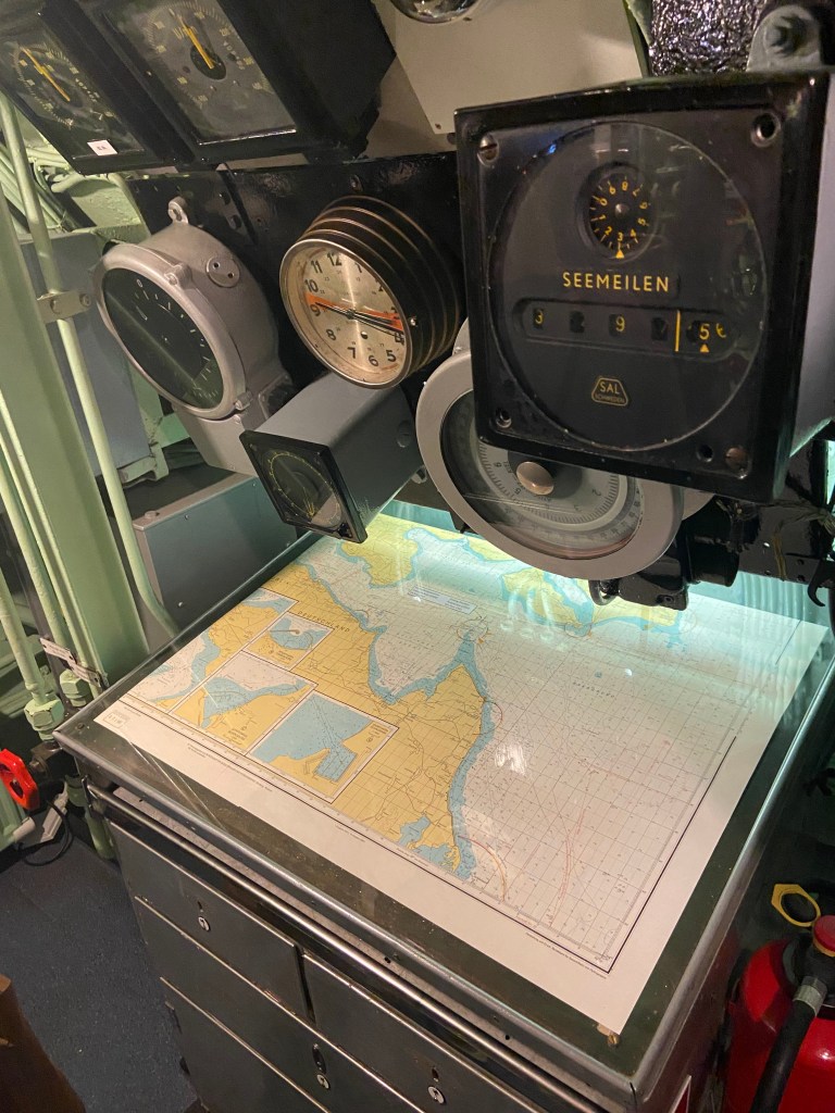 Über eine schmale Gangway gelangt man ins Innere des U-Bootes. Kaum betritt man den Rumpf, verändert sich die Atmosphäre: Metall, enge Gänge, niedrige Decken und ein Gewirr aus Schaltern, Rohren und Maschinen. Es ist schwer vorstellbar, dass hier einst bis zu 57 Mann Besatzung lebten und arbeiteten. Der Rundgang ist gut strukturiert und mit vielen Infotafeln versehen. Man lernt viel über die Technik, aber auch über den Alltag an Bord – zwischen Schichtdienst, beengten Kojen und permanenter Alarmbereitschaft.