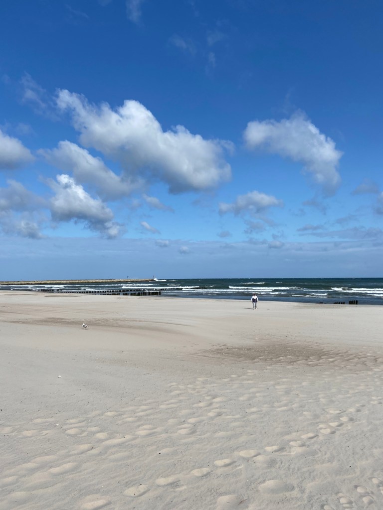 Der feinsandige Strand von Rowy ist das Herzstück des Ortes. Weitläufig und sauber, lädt er zum Sonnenbaden, Spazierengehen und Muschelsuchen ein. Die Ostsee zeigte sich an diesen Tagen von ihrer besten Seite: Mal ruhig und klar, mal mit frischer Brise und leichten Wellen – perfekt für eine Abkühlung zwischendurch.