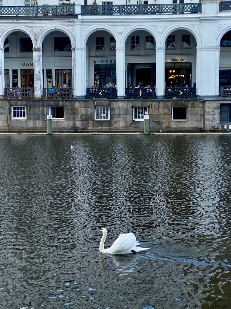 Tipp: Besonders schön ist ein Besuch bei Sonnenuntergang – wenn sich das Licht in der Alster spiegelt und die Stadt in ein goldenes Leuchten taucht.