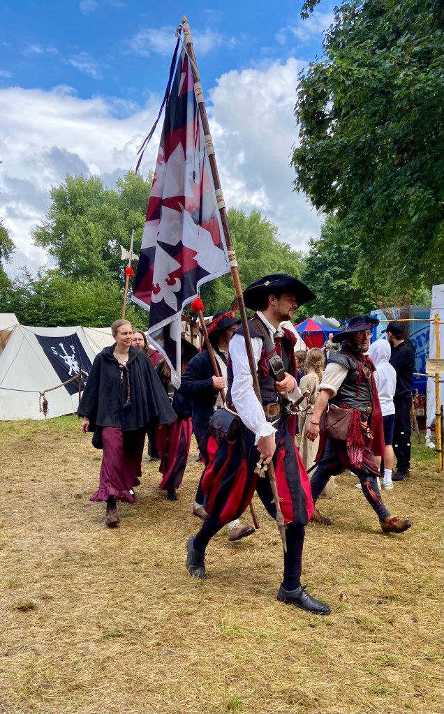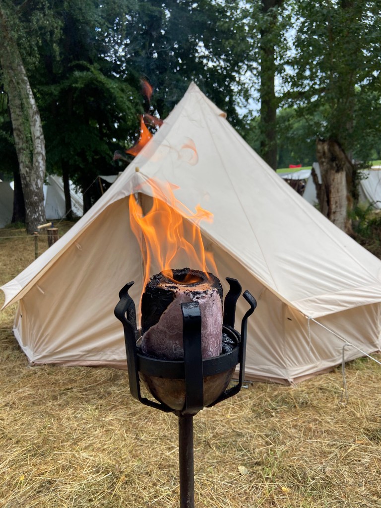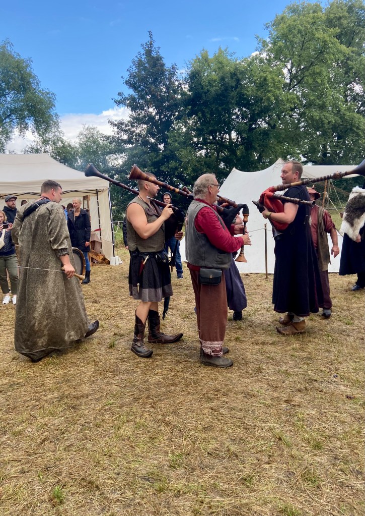 Genuss & Geselligkeit: Deftige Speisen wie Fladenbrot, Wildbratwurst und rustikale Eintöpfe sorgen für das leibliche Wohl. Dazu gibt es Met, Kirschbier und erfrischende Getränke. Wer mag, bleibt bis in die Dämmerung, wenn das Gelände im Licht der Fackeln und Feuerstellen eine ganz besondere Atmosphäre entfaltet.