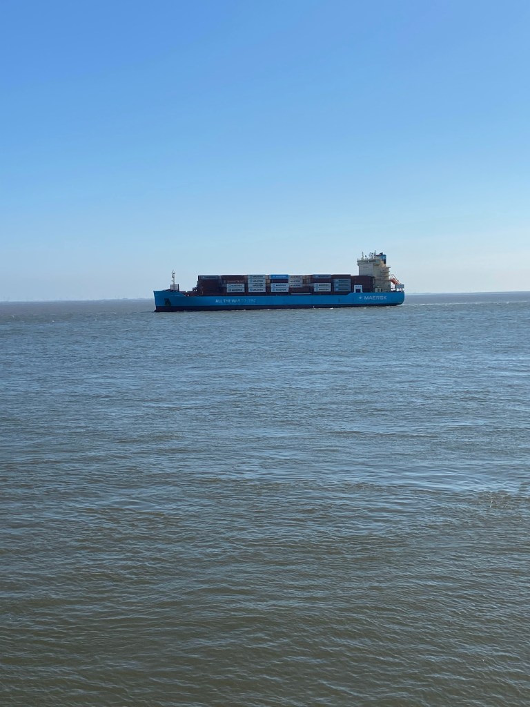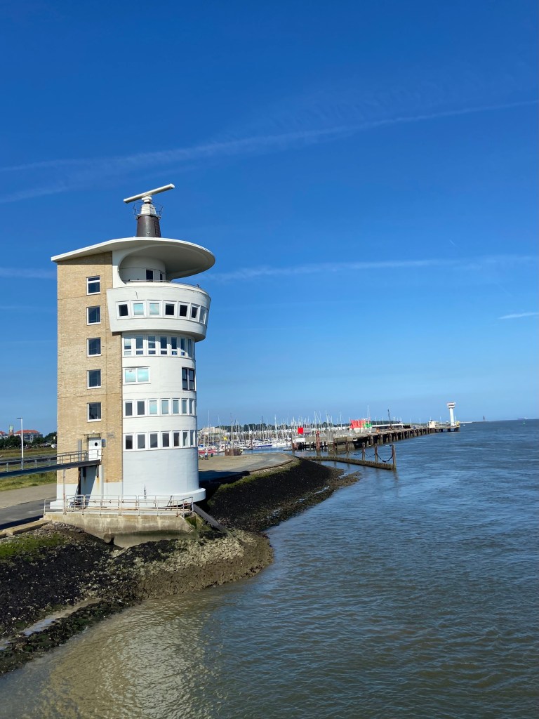 Vom Fuß der Kugelbake hat man einen großartigen Blick auf vorbeiziehende Schiffe, die Neuwerker Seite und die Weite des Wattenmeers. Ein kurzer Stopp auf dem Deich, tief durchatmen – ein Moment zum Abspeichern.