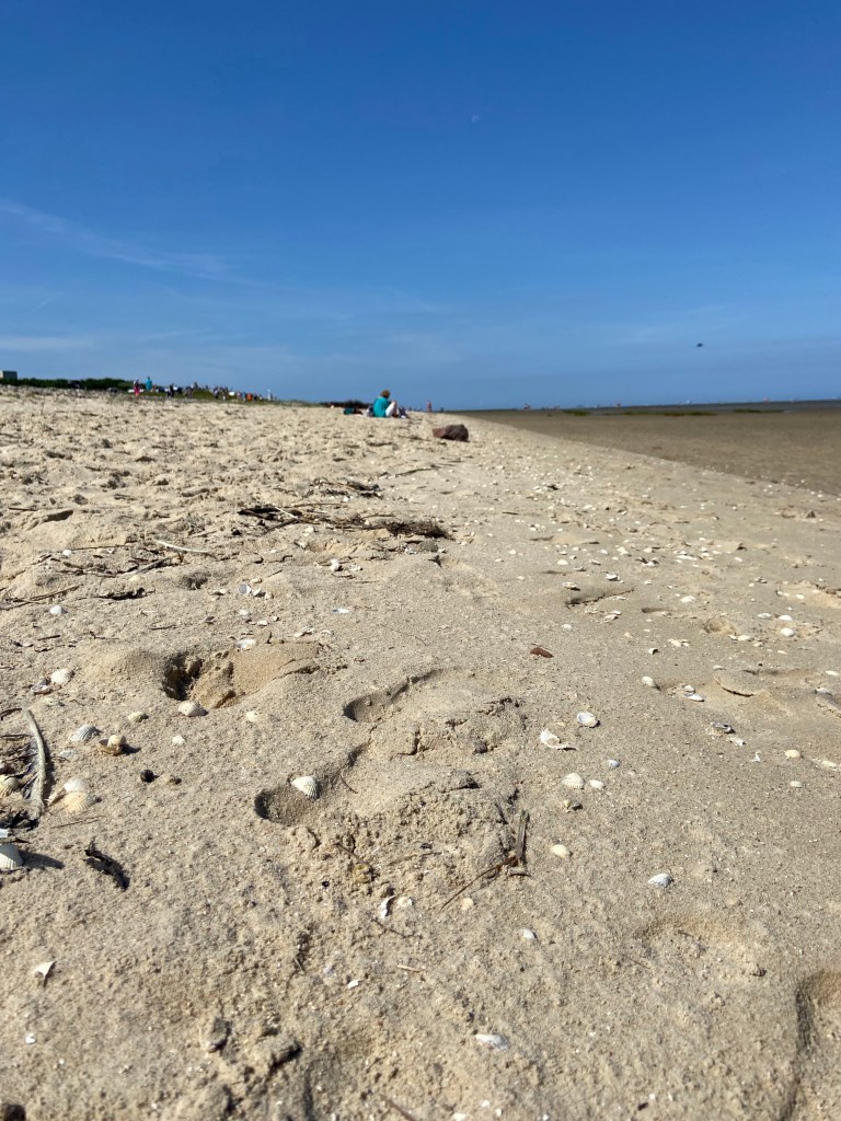Ich folgte der Wasserkante, ließ das kühle Nordseewasser die Knöchel umspielen und genoss die klare Sicht bis zum Horizont. Die lange, ruhige Geradlinigkeit des Strandes machte das Gehen meditativ: Schritt, Wellenrauschen, Wind – mehr braucht es nicht.