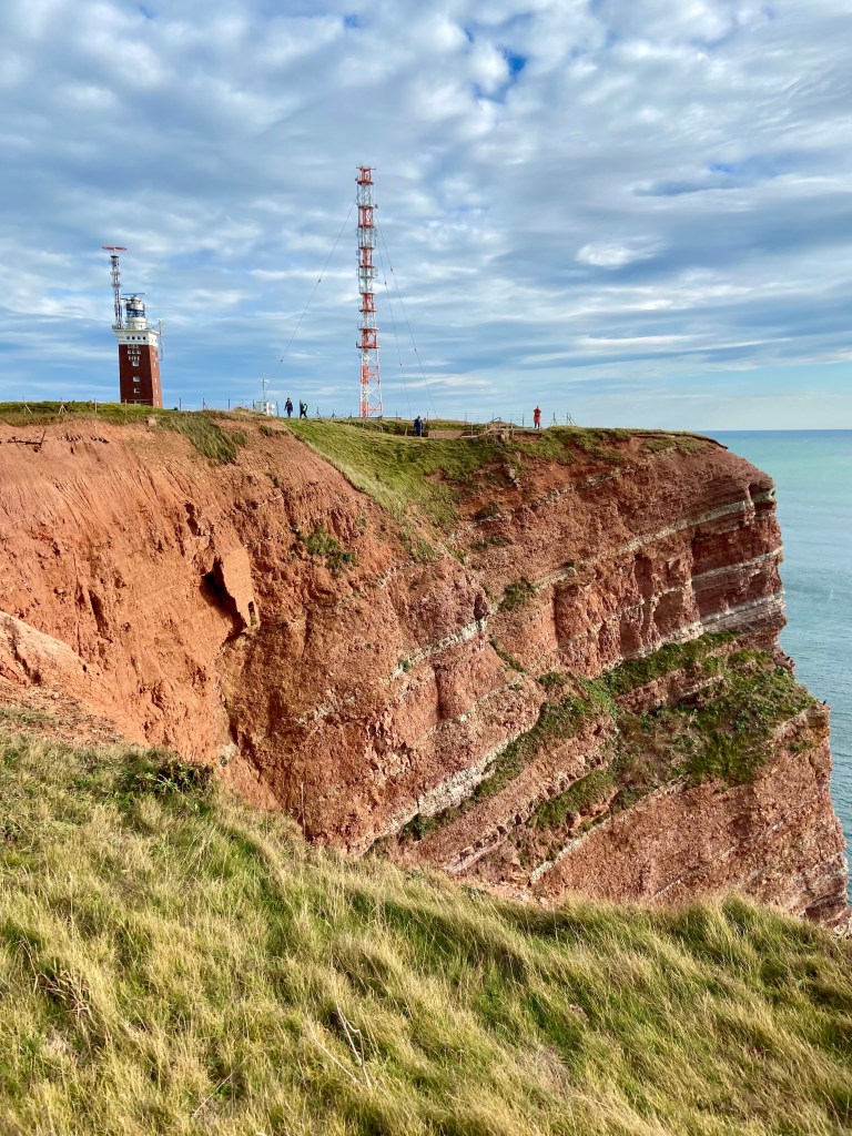 Natürlich durfte auch ein Abstecher zur Langen Anna nicht fehlen. Diese rund 47 Meter hohe freistehende Felsnadel im Norden der Insel ist das Wahrzeichen Helgolands. Sie entstand 1860 durch die Abtrennung vom Kliff und trotzt seitdem Wind und Wellen. Bei unserem Besuch konnten wir uns von der beeindruckenden Größe und den markanten roten Buntsandsteinformationen selbst überzeugen – ein beliebtes Fotomotiv und echtes Naturdenkmal.
