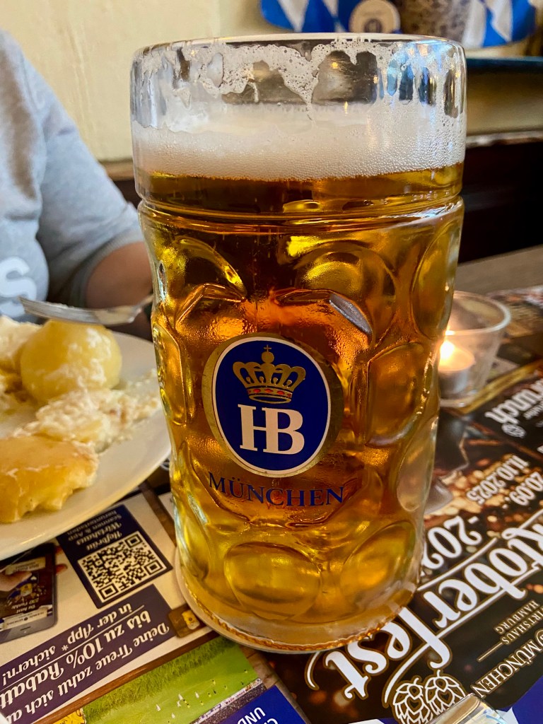 Neben uns saßen zwei ältere Herren, die sich über Fußball unterhielten, am Nachbartisch eine Familie mit Kindern, die begeistert Brezeln tunkten. Dazwischen lauter lachende Gesichter, Maßkrüge, und diese typische Mischung aus norddeutscher Gelassenheit und süddeutscher Lebensfreude.