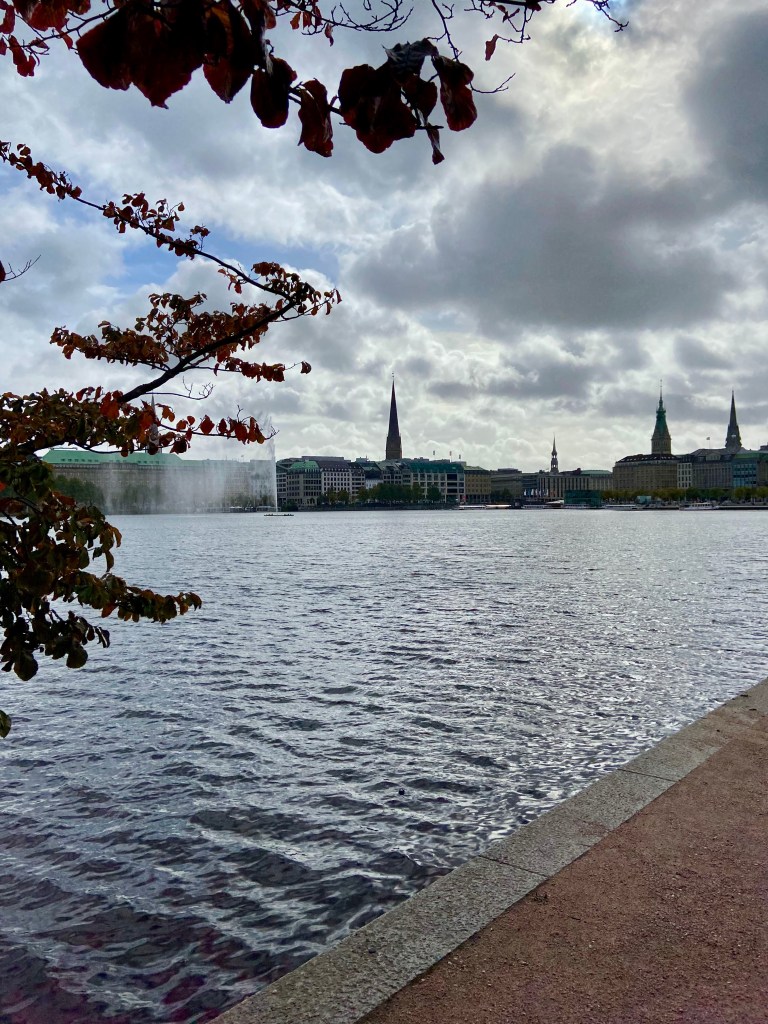 Nach dem Brunch (Preis übrigens faire 24,90 Euro pro Person, Kinder zahlen weniger) war klar: ein Verdauungsspaziergang muss sein. Also ging’s zu Fuß rüber zur Binnenalster – vorbei an herbstlichen Bäumen, Straßenmusikern und Touristen mit Kameras.