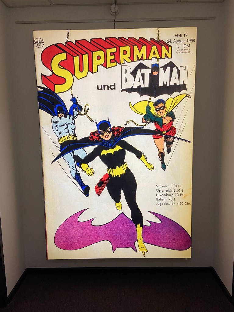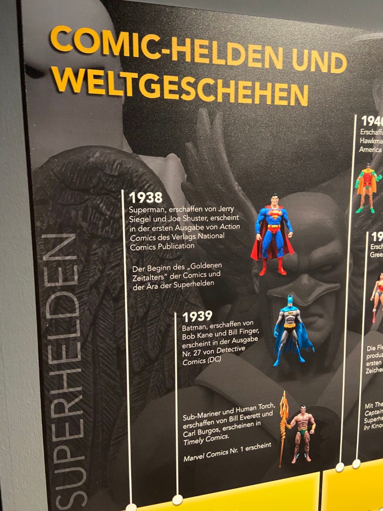 Die Ausstellung ist in kräftigen Farben gestaltet – Gelb, Rot und Blau erinnern an klassische Comic-Cover – und lädt zum Entdecken ein. Infotafeln, Projektionen und kurze Filmsequenzen sorgen dafür, dass die Themen auch für jüngere Besucher verständlich bleiben.