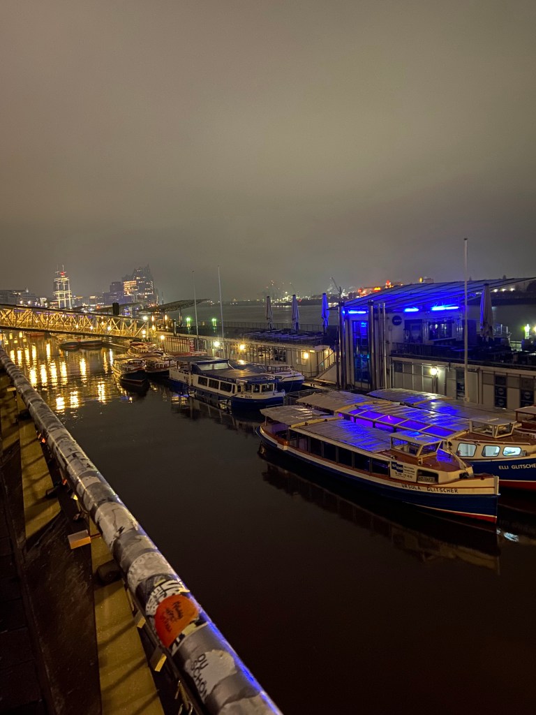 Oberhalb des Alten Elbtunnels bot sich ein spektakulärer Anblick: die nächtlich beleuchtete Skyline des Hafens mit der Elbphilharmonie, den Kränen und den Lichtern der Schiffe. Ein Moment, in dem Geschichte, Technik und Romantik aufeinandertreffen – und Hamburgs unverwechselbarer Charme spürbar wird.