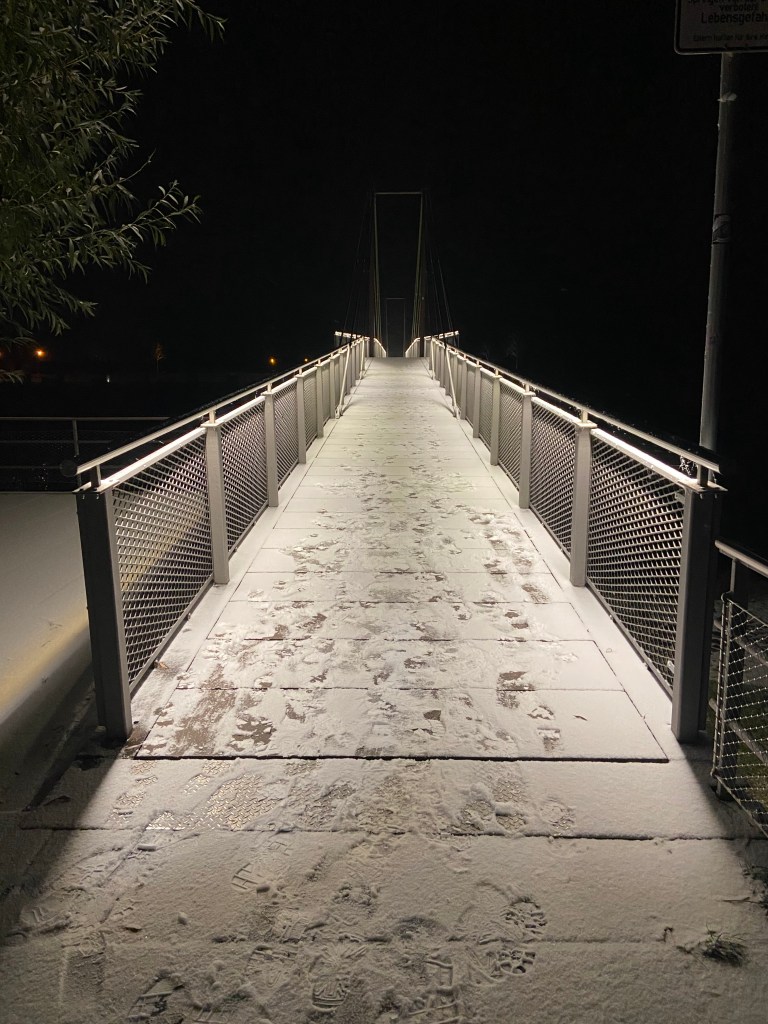 Am späten Abend des 23. November 2025 führte uns der Heimweg aus Lüneburg zu einem spontanen Zwischenstopp am Menzer-Werft-Platz in Geesthacht. Zuvor hatten wir im Filmpalast Lüneburg den Film „Das Leben der Wünsche“ gesehen. Mit vielen Eindrücken aus dem Kino machten wir uns anschließend auf den Rückweg Richtung Geesthacht – ahnend, dass uns der erste Schnee des Jahres erwarten würde.