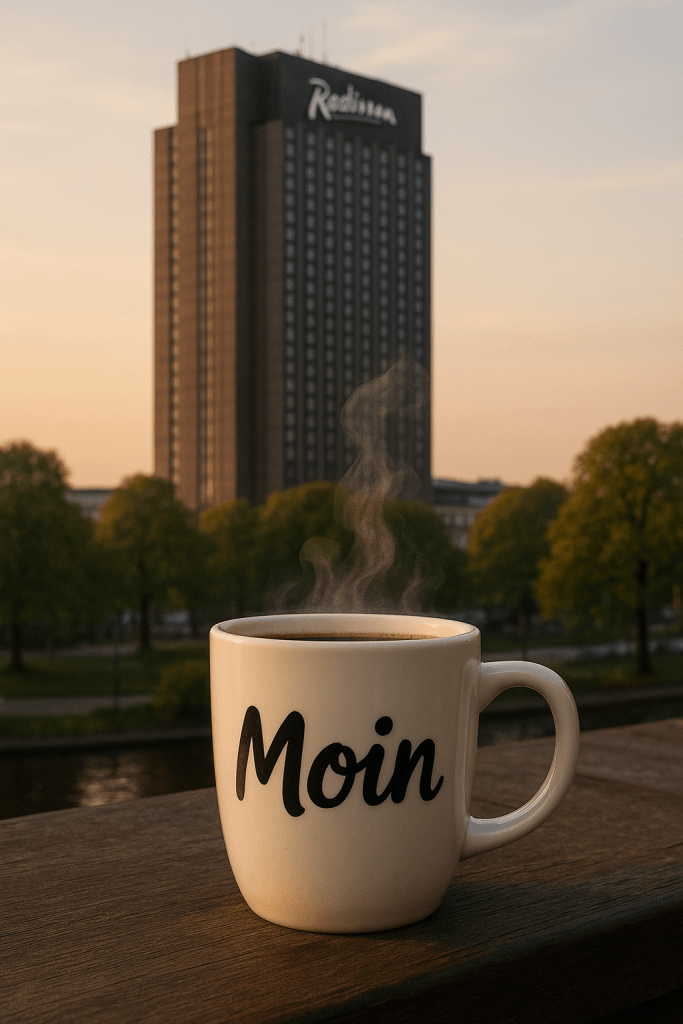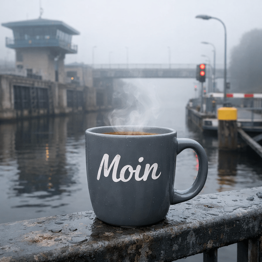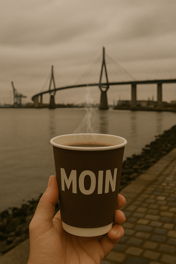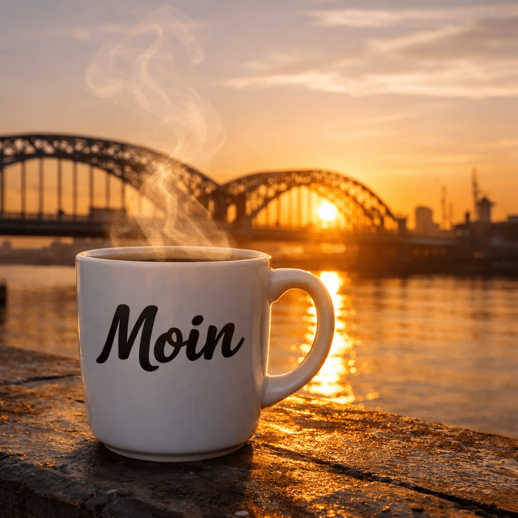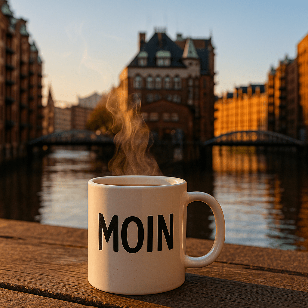 Umso wichtiger ist das morgendliche „Moin“ geblieben. Früh hat sich der Gruß mit der Kaffeetasse am Morgen verbunden – als Symbol für Ankommen, Ruhe und einen klaren Start in den Tag. Dieses Motiv hat sich weiterentwickelt. Heute nutze ich dafür häufig KI zur Bilderstellung. Das ist zeitgemäß und konsequent: vertraute (nicht ganz reale) Motive, modern interpretiert. Ein entscheidender Aspekt dabei ist vielleicht auch die Rechtssicherheit. KI-generierte Bilder ermöglichen es, Stimmungen zu transportieren, ohne fremde Werke zu nutzen oder urheberrechtliche Grauzonen zu betreten. Ich trete niemandem auf die Füße. KI ist für mich ein Werkzeug, kein Ersatz für Haltung oder Persönlichkeit.