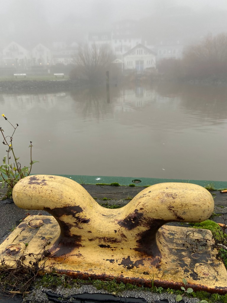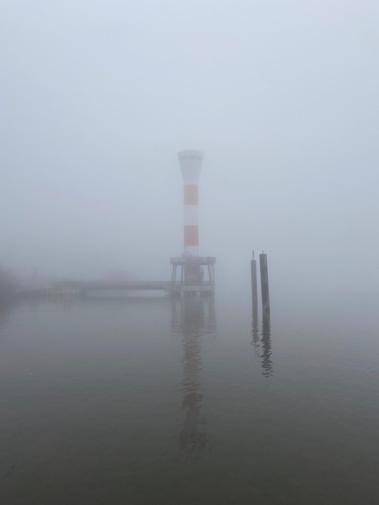 Am Fähranleger an der Elbe angekommen, zeigte sich die winterliche Szenerie besonders intensiv. Wo sonst weite Blicke über den Strom und reger Schiffsverkehr dominieren, ließ der Nebel an diesem Tag nur schemenhafte Konturen zu. Die Elbe war mehr zu erahnen als zu sehen – eine ruhige, beinahe kontemplative Atmosphäre stellte sich ein.