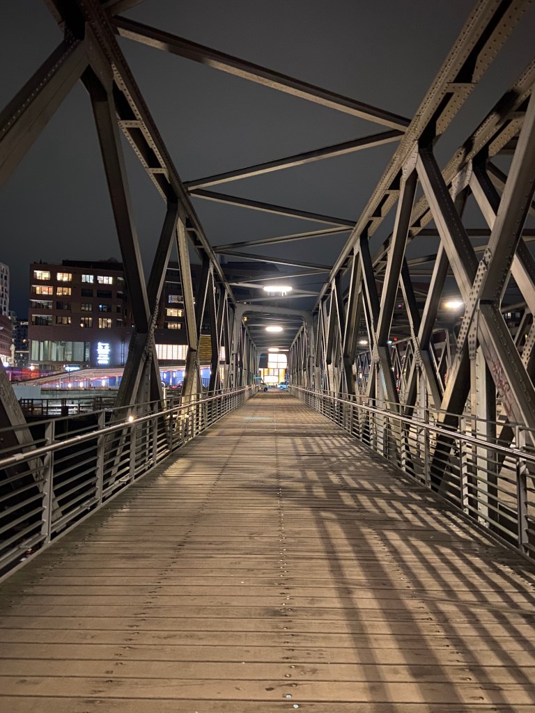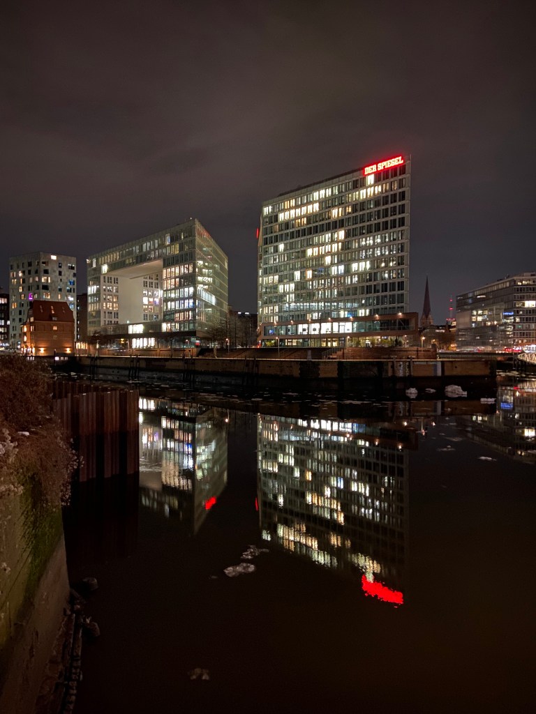 Der Kontrast zwischen den modernen Bauten der HafenCity und den historischen Strukturen der Speicherstadt wird durch die Beleuchtung zusätzlich verstärkt. Wege und Promenaden wirken klar strukturiert und sicher, zugleich aber ruhig und weitläufig. Trotz der urbanen Umgebung stellt sich eine besondere Gelassenheit ein – ein Eindruck, der den nächtlichen Spaziergang zu einem zentralen Bestandteil des Abends machte.