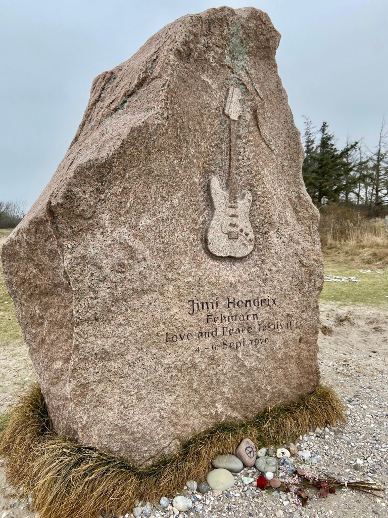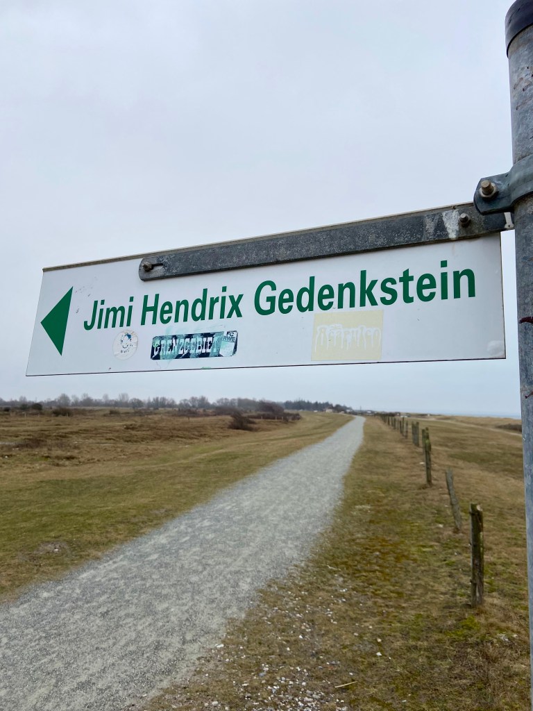 Im weiteren Verlauf des Tages besuchten wir den Gedenkstein für Jimi Hendrix bei Flügge. Er erinnert an das letzte Konzert des Musikers, das im September 1970 im Rahmen des „Love-and-Peace-Festivals“ auf Fehmarn stattfand – nur wenige Tage vor seinem Tod. Damit ist dieser Ort ein Teil internationaler Musikgeschichte. Die schlichte Gedenkstätte fügt sich unaufdringlich in die Landschaft ein und wirkte bei winterlicher Kälte und starkem Wind besonders still und nachdenklich.