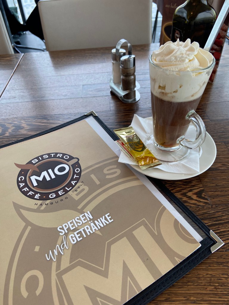 Unmittelbar neben dem Geschehen und damit ausgesprochen gut gelegen befand sich das Mio – Bistro Caffè Gelato. Nach dem Maskenzauber war es der naheliegende Ort für eine Pause. Drinnen empfing uns eine ruhige, warme Atmosphäre – ein wohltuender Kontrast zur Kälte draußen. Bei heißem Kaffee konnten wir uns aufwärmen und entschieden uns für eine kleine Stärkung, bewusst leicht und genau passend für diesen Moment am frühen Nachmittag.