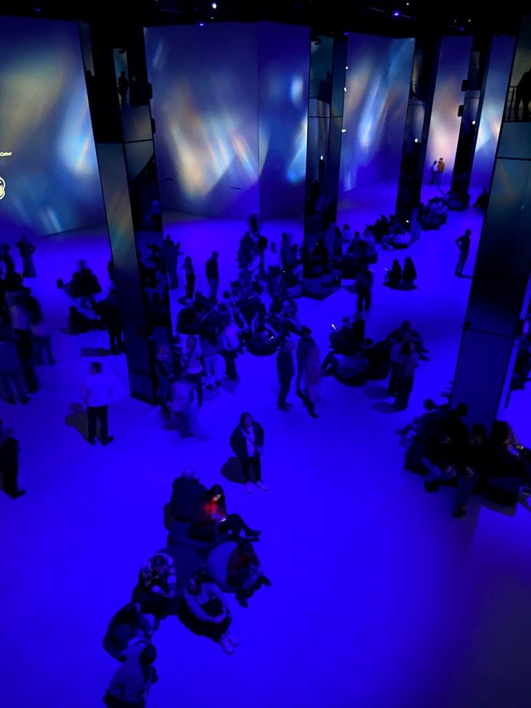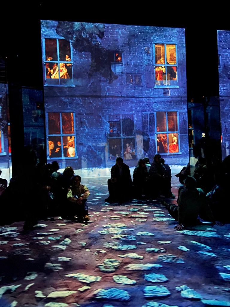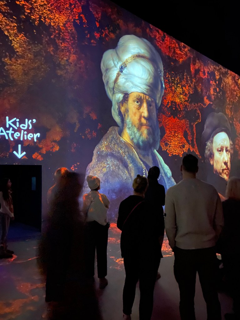 Ein Bereich war deutlich stärker frequentiert als andere: der Selfie-Spot, an dem Besucherinnen und Besucher die Möglichkeit haben, ein KI-generiertes Bild von sich erstellen zu lassen. Dieses Angebot stieß auf großes Interesse und führte zeitweise zu spürbarem Andrang. Wir selbst haben bewusst darauf verzichtet und uns stattdessen auf die eigentliche Ausstellung konzentriert. Für uns stand das unmittelbare Erleben der Projektionen im Vordergrund – ohne zusätzliche digitale Inszenierung der eigenen Person.